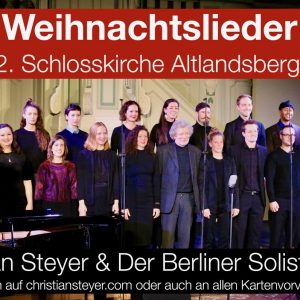 Ein besonderes musikalisches Erlebnis erwartet Sie in der festlichen Adventszeit: Schauspieler, Musiker und Komponist Christian Steyer präsentiert gemeinsam mit dem Berliner Solistenchor ein Konzert voller Klangfarben, Tiefe und Emotion. Die außergewöhnlichen Stimmen des Chores verschmelzen mit Steyers künstlerischer Handschrift zu einem Programm, das besinnliche wie auch kraftvolle Momente bereithält. Freuen Sie sich auf eine einzigartige...
