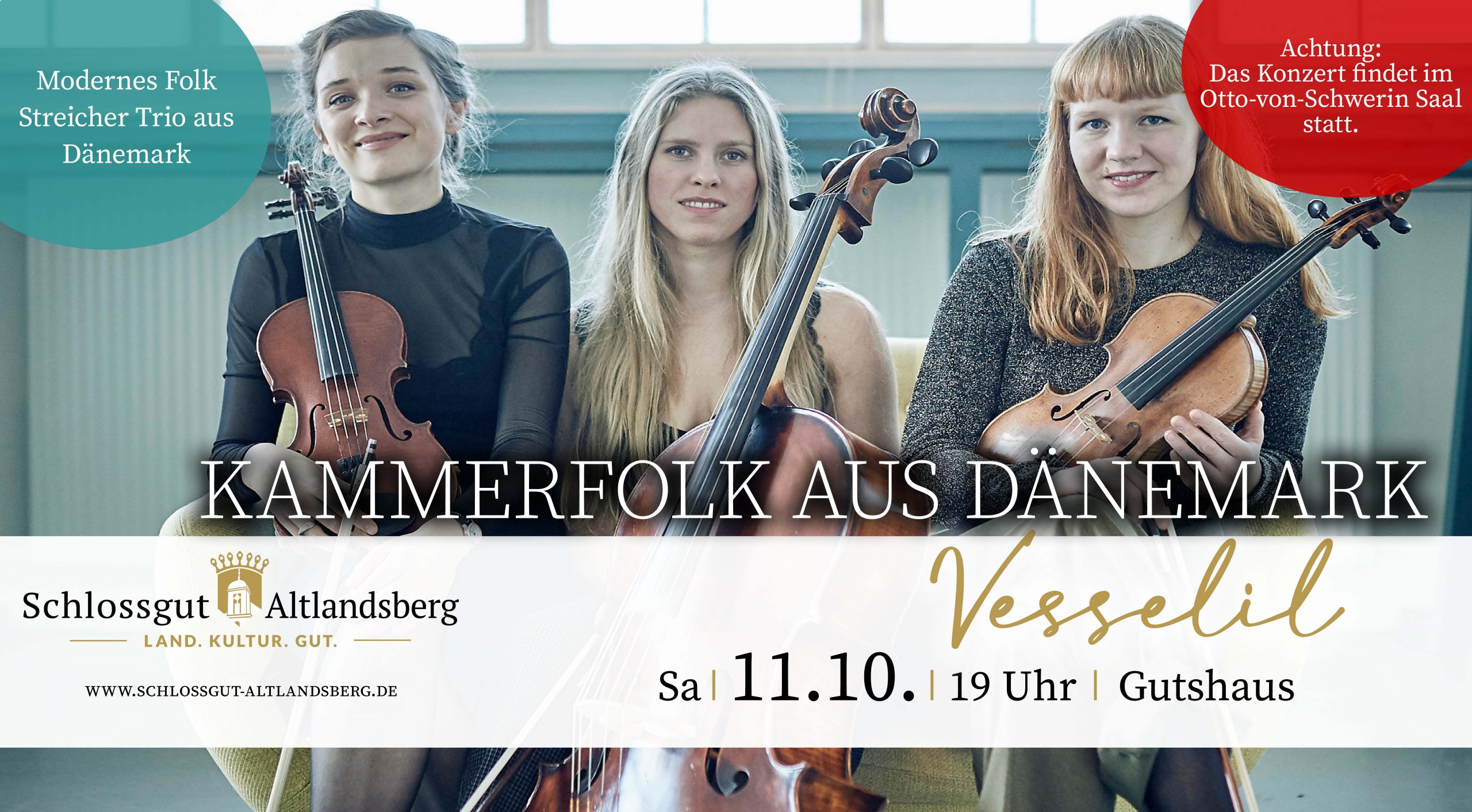 VESSELIL ist ein modernes Folk Streicher Trio aus Dänemark in der Zusammensetzung Violine, Bratsche, Cello und Stimmen. Ihr Repertoire besticht durch eine kammermusikalische Herangehensweise und besteht aus einer vielseitigen und eleganten Mischung aus alten nordischen Volksliedern, Tanzmusik sowie Elementen der Improvisation. Mit außergewöhnlicher Ausstrahlung und absoluter Hingabe zur Musik, verbunden mit teils gefühlvollen, teils druckvollen Arrangements, die den Zuhörer in filmische Szenerien hinein – und wieder heraustransportieren, auf brodelnde Tanzflächen und in den offenen Himmel, hat das Trio inzwischen ein breitgefächertes Publikum sowohl in Dänemark als auch in Deutschland tief beeindruckt und berührt, mit Auftritten u.a. bei Musik Over Præstø Fjord (DK), CPH World Music Festival (DK), folkBALTICA (DE), Tanz & Folk Festival Berlin (DE), sowie in unzähligen Kirchen, Veranstaltungsorten und Schulen in ganz Dänemark.