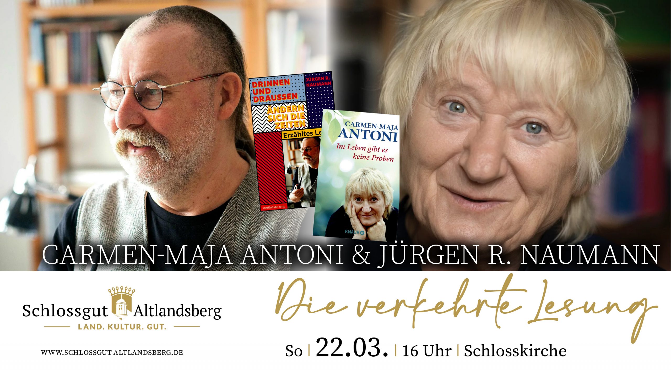 Am 22. März 2026 um 16 Uhr lädt die Schlosskirche zu einer besonderen Lesung unter dem Titel „Die verkehrte Lesung“ ein. Zwei bekannte Stimmen treffen aufeinander: Carmen-Maja Antoni liest „Drinnen und draußen ändern sich die Zeiten“, Jürgen R. Naumann liest „Im Leben gibt es keine Proben“.
