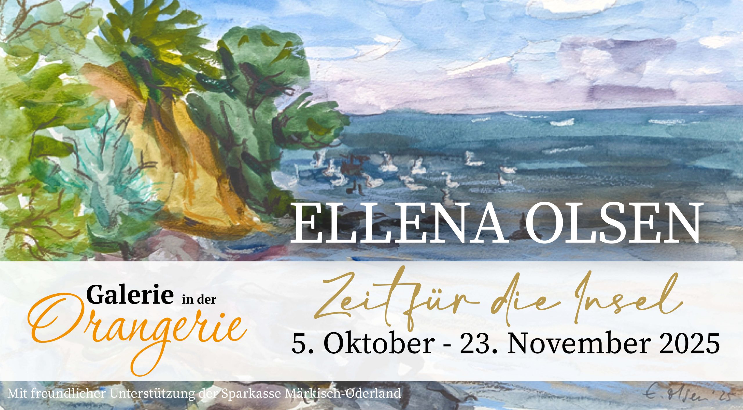 Vom 5. Oktober bis 23. November 2025 präsentiert die Galerie in der Orangerie auf dem Schlossgut Altlandsberg die Ausstellung „Zeit für die Insel“ der Berliner Malerin und Objektkünstlerin Ellena Olsen. In einer facettenreichen Schau begegnen die Besucherinnen und Besucher Aquarellen, Ölbildern und Objekten, die Olsens künstlerische Handschrift eindrucksvoll sichtbar machen – zwischen malerischer Verdichtung, expressiven Farbwelten und poetischen Arrangements des Alltäglichen.